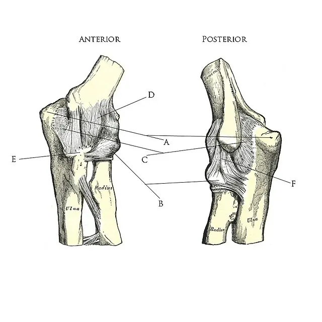 - Ligamento colateral lateral (LCL): más raro, pero relevante en caídas con extensión y rotación del antebrazo.